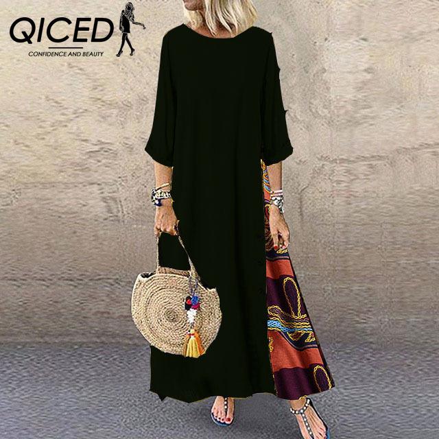 QICED Осенний винтажный цветочный круглый вырез с пуговицами и семиточечным рукавом — купить товар онлайн с бесплатной доставкой до всему миру!