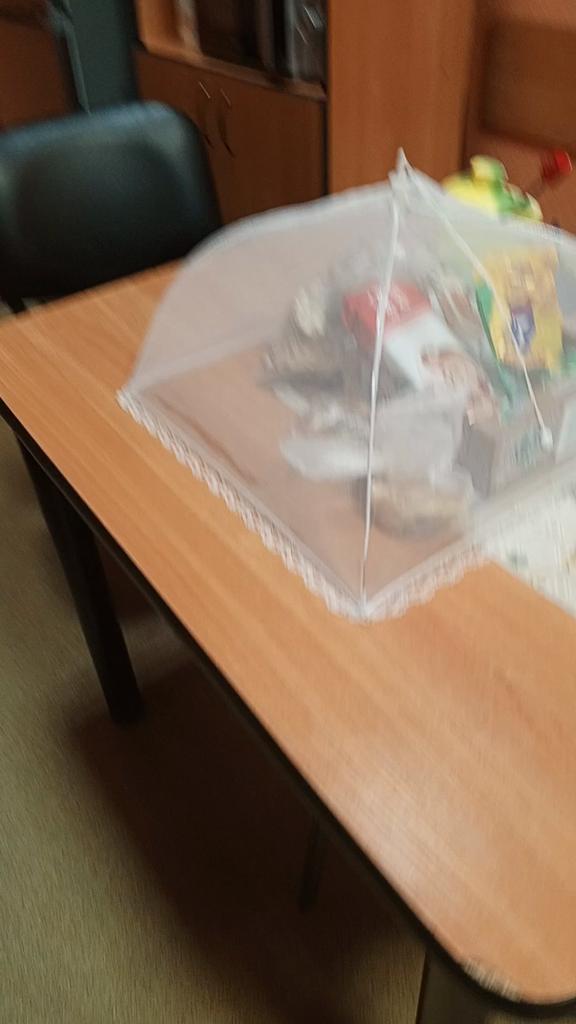 пришла кривая штука, которую при выпрямлении повредили, так как спица никак не хотела гнуться в другую сторону для устойчивости. В присланном кривом виде оставались большие прорехи между столом и самой этой штукой, куда залетела муха