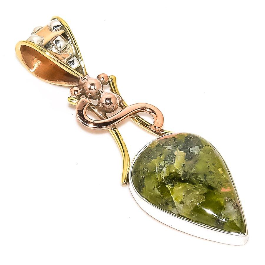 Натуральный драгоценный камень унакит, двухцветный твердый серебряный кулон 925 пробы, подарочный кулон 2 дюйма U8L97 — купить товар онлайн с бесплатной доставкой до всему миру!