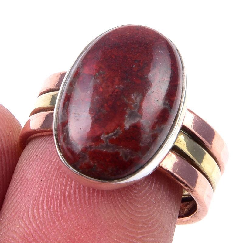 Кольцо из двухцветного серебра 925 пробы с натуральным красным драгоценным камнем яшмой S.7 y8j47 — купить товар онлайн с бесплатной доставкой по всему миру!