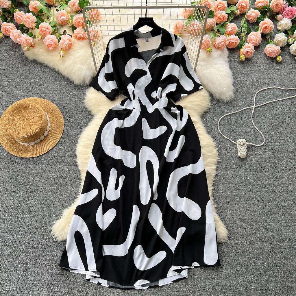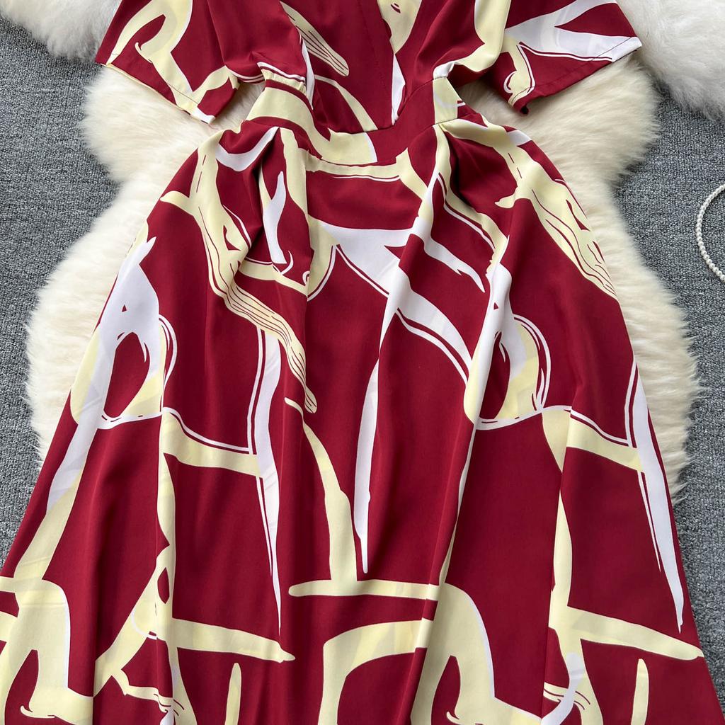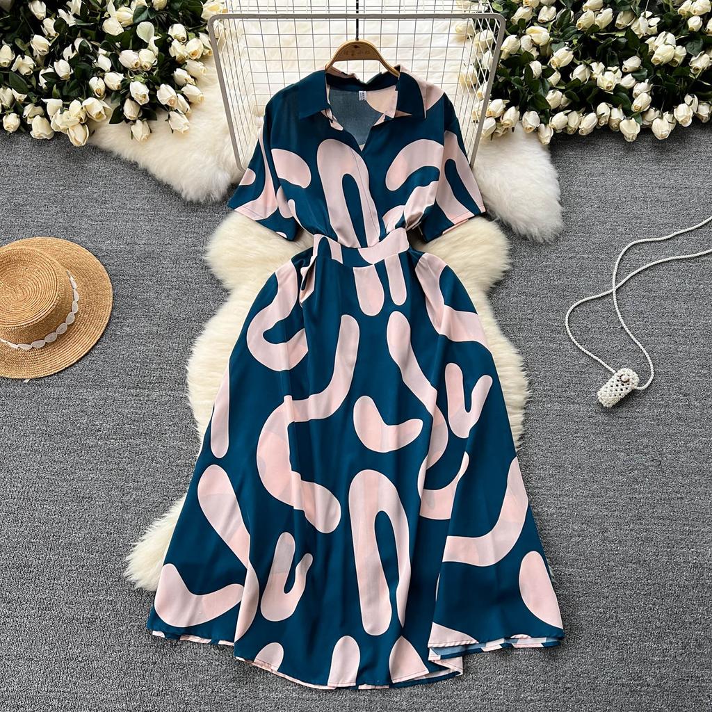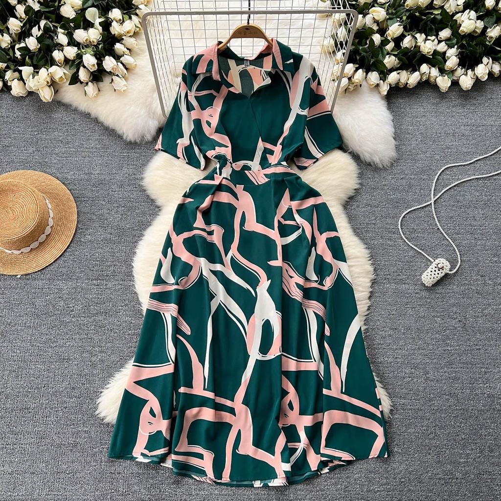 Летние женские винтажные длинные платья с короткими рукавами и принтом на талии