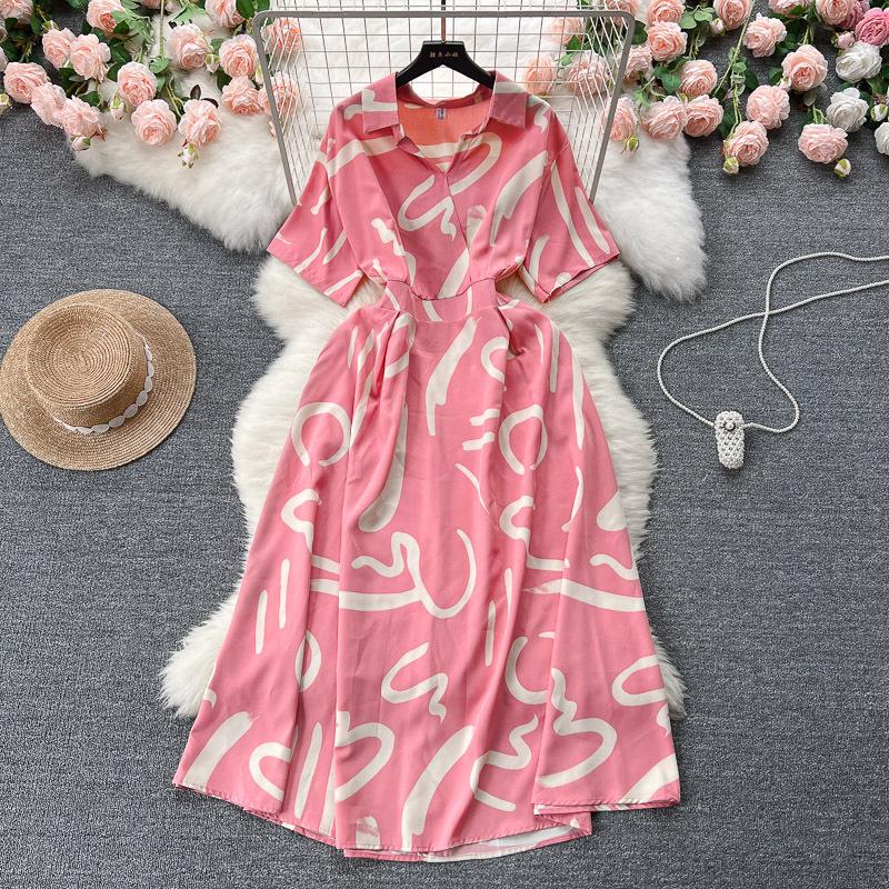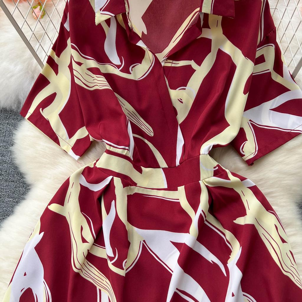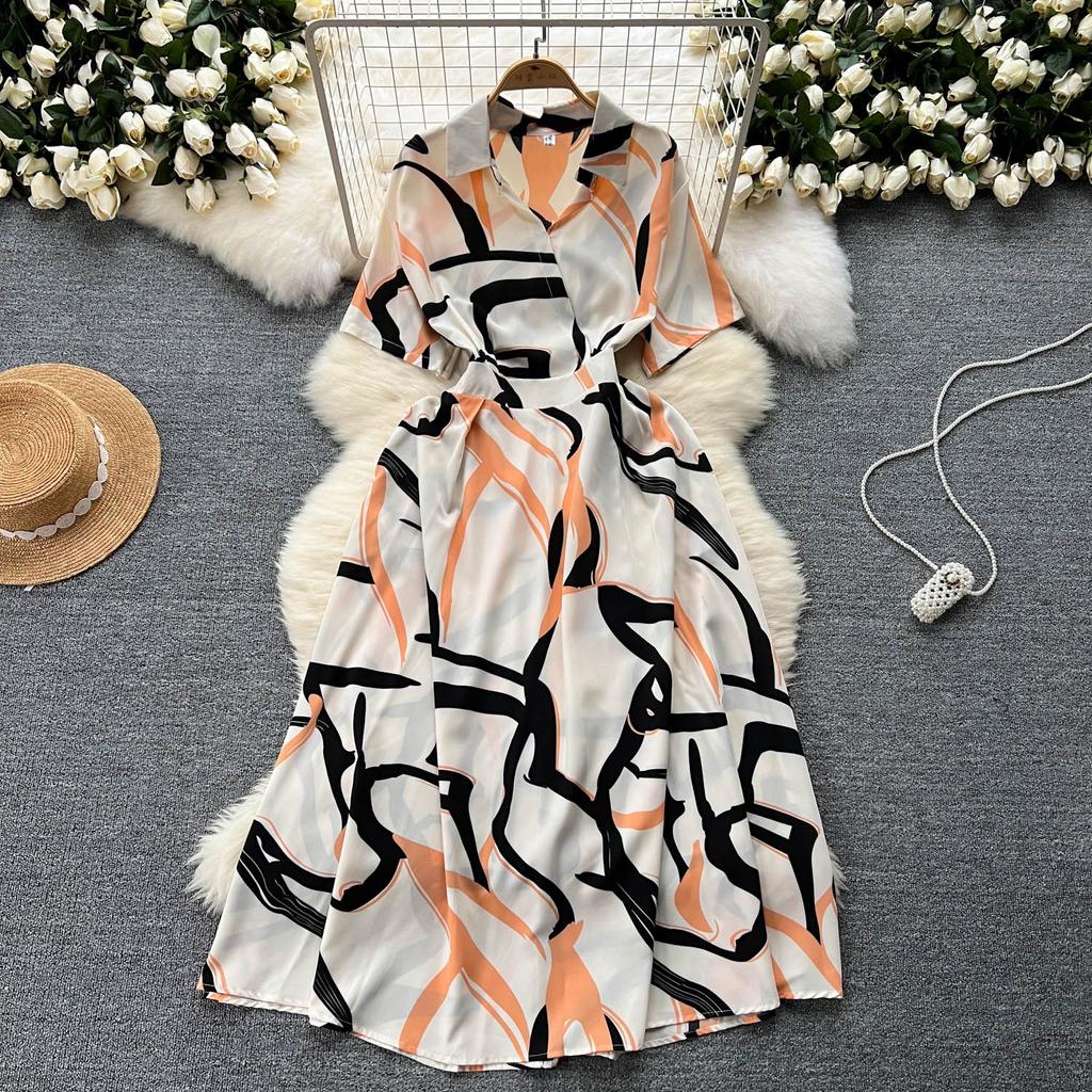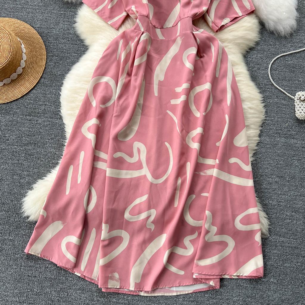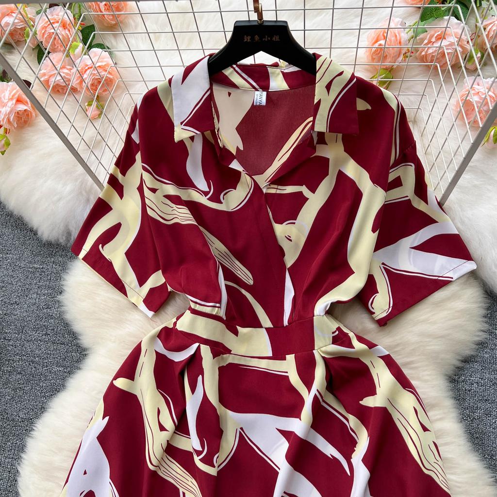 Летние женские винтажные длинные платья с короткими рукавами и принтом на талии