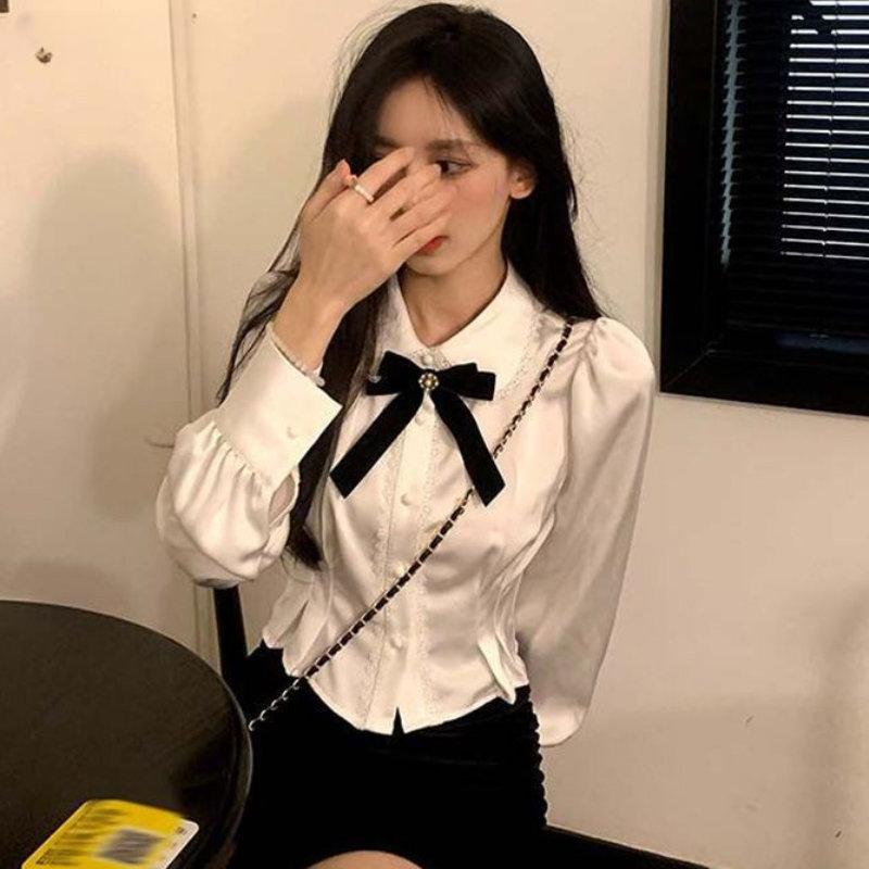 Рубашки женские, тонкие, в консервативном стиле, с воротником Питера Пэна, с кружевным дизайнером, элегантные, милые, в стиле Лолиты, кавайная одежда, корейская мода