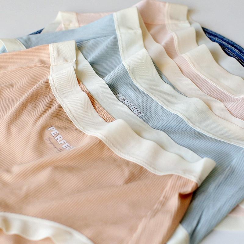 Нижнее белье в рубчик со средней талией, дышащие женские трусики с запахом на бедрах, удобные простые трусики с треугольной резьбой
