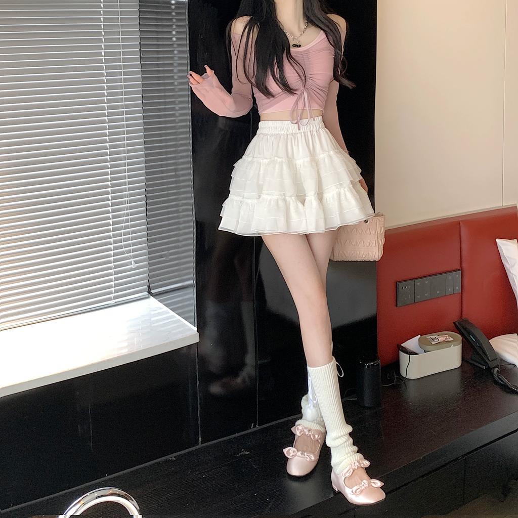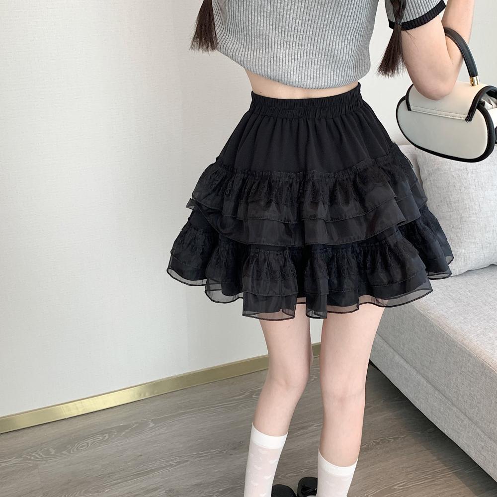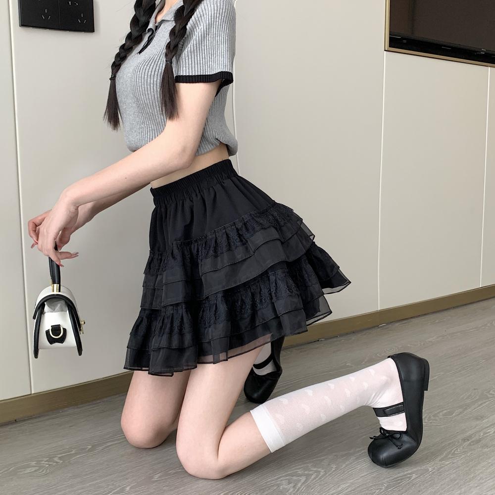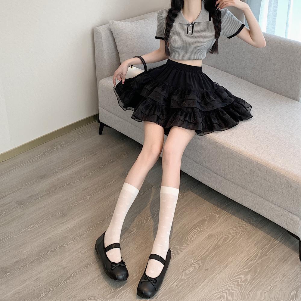 Летняя одежда Сетчатая юбка Черно-белая мини-юбка Женские черные милые пышные юбки 2023 Корейская модная новая одежда Уличная одежда