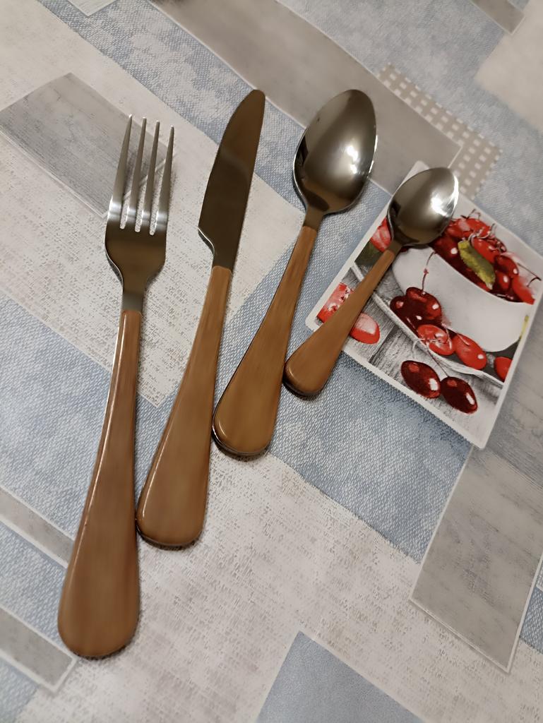 🌺 Набор столовых приборов 🌺 Доставка месяц до Иркутска в сборной посылке с полным отслеживанием! Набор состоит из 4-х предметов - нож, вилка, ложка чайная и столовая! Отличный набор, красивый. Хорошее качество, нет зазубрин и царапин. Удобно в использовании! Рекомендую!! 🔥 Всем удачных покупок! 💞 И спасибо за ваши 💕💕💕