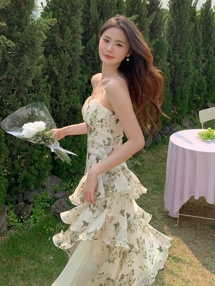 Летние шифоновые платья миди с цветочным принтом, женское платье без рукавов на тонких бретельках с открытой спиной и рюшами, элегантные повседневные вечерние женские платья