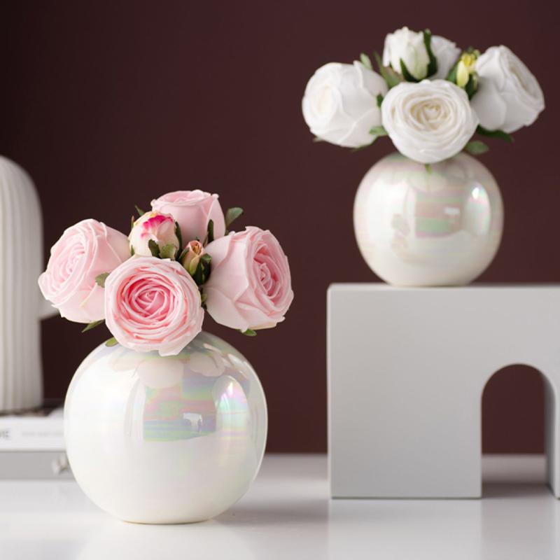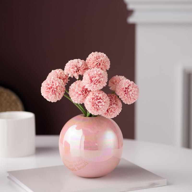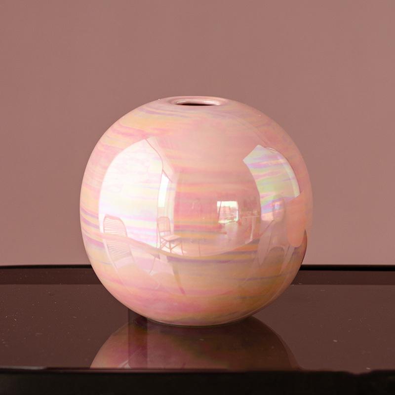 Керамическая ваза цвета жемчужного порошка Розовая и белая круглая шаровая ваза Креативная простая керамическая ваза