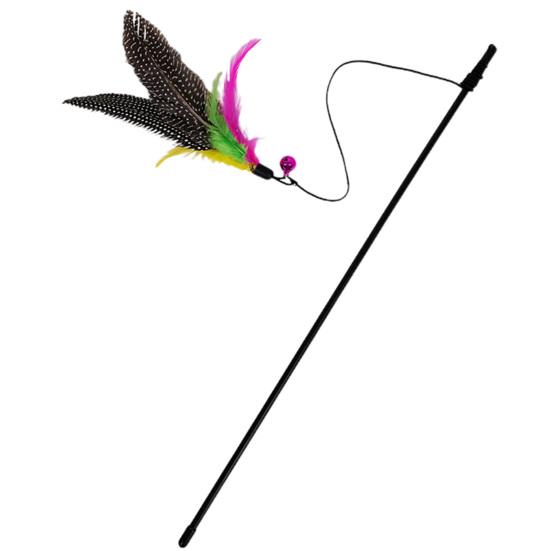 Привлекательная палочка для кошек, облегчающая давление, черная дразнилка для котенка, интерактивный стержень с перьями-колокольчиком