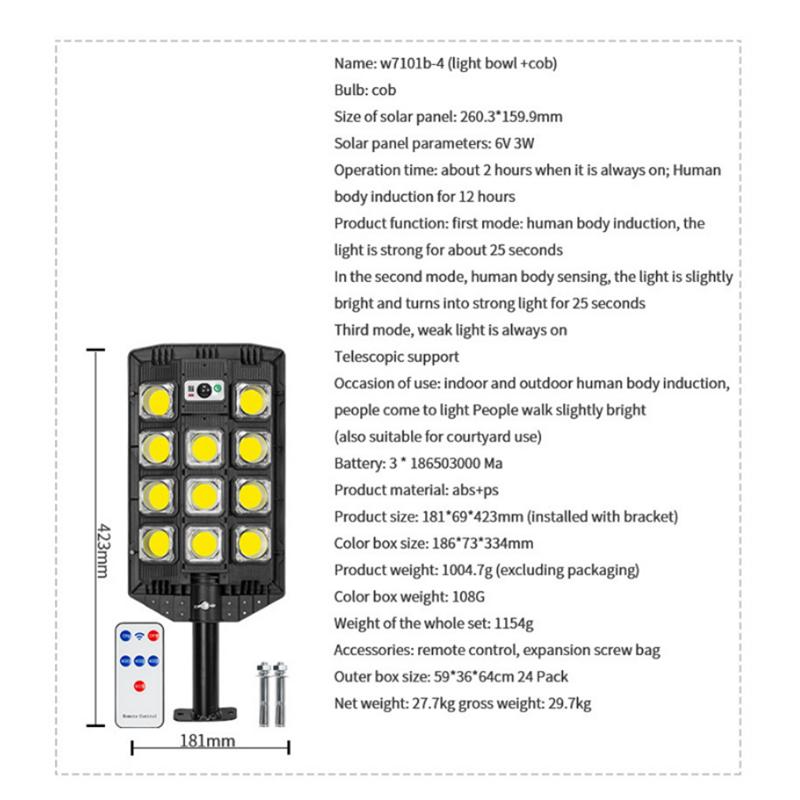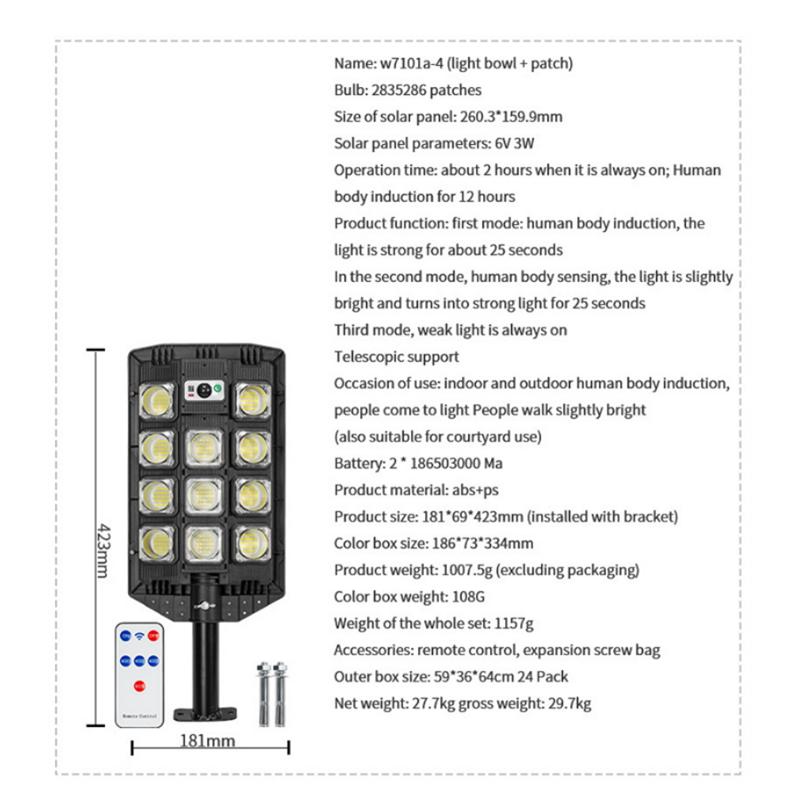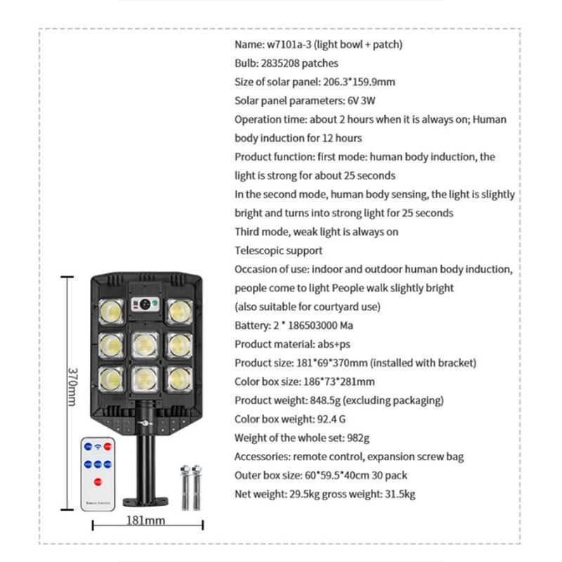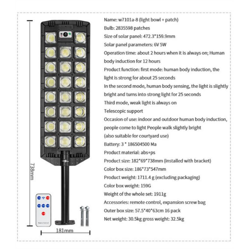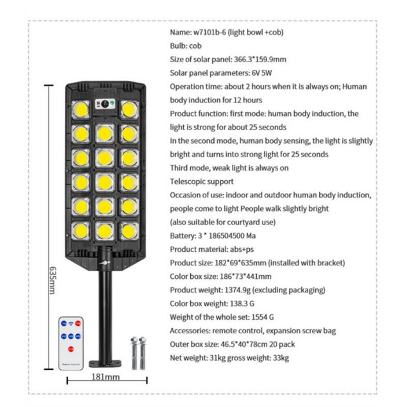15000LM Наружное освещение COB трехрядное солнечное освещение для двора 598LED солнечное садовое освещение Супер большой и супер яркий солнечный уличный фонарь