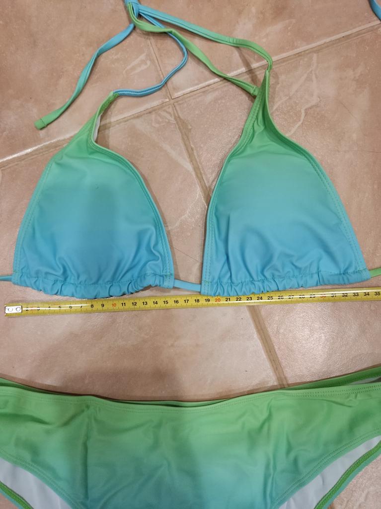 Купальник, как буд-то с разных размеров: лиф 42, а плавочки 52 размер. На фото видно не соразмерность верха и низа, хотя ярлычок размерный одинаковый. Сам купальник хороший, качественно пошит, но его несоразмерность всё испортило. В сравнение плавок одного комплекта и данного купального комплекты, разница очевидна.