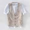 Мужской жилет в английском стиле, летняя модная жилетка, мужская дышащая повседневная куртка с V-образным вырезом, тонкая полосатая безрукавка из хлопка и льна на пуговицах