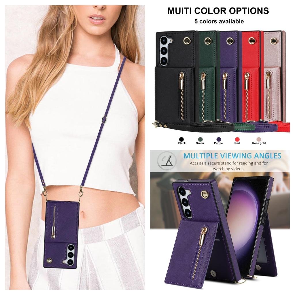 Кошелек на молнии с несколькими картами и длинный висящий чехол для телефона на веревке для серии iPhone Samsung Galaxy S9 S10 S20 S21 S22 S23 Note9 Note10 Note20...