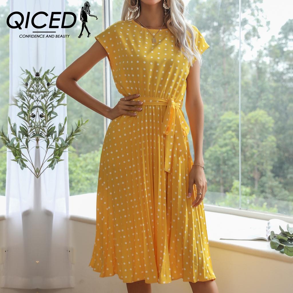 Женское винтажное платье QICED с плиссированной юбкой в горошек и шнуровкой — купить товар онлайн с бесплатной доставкой по всему миру!