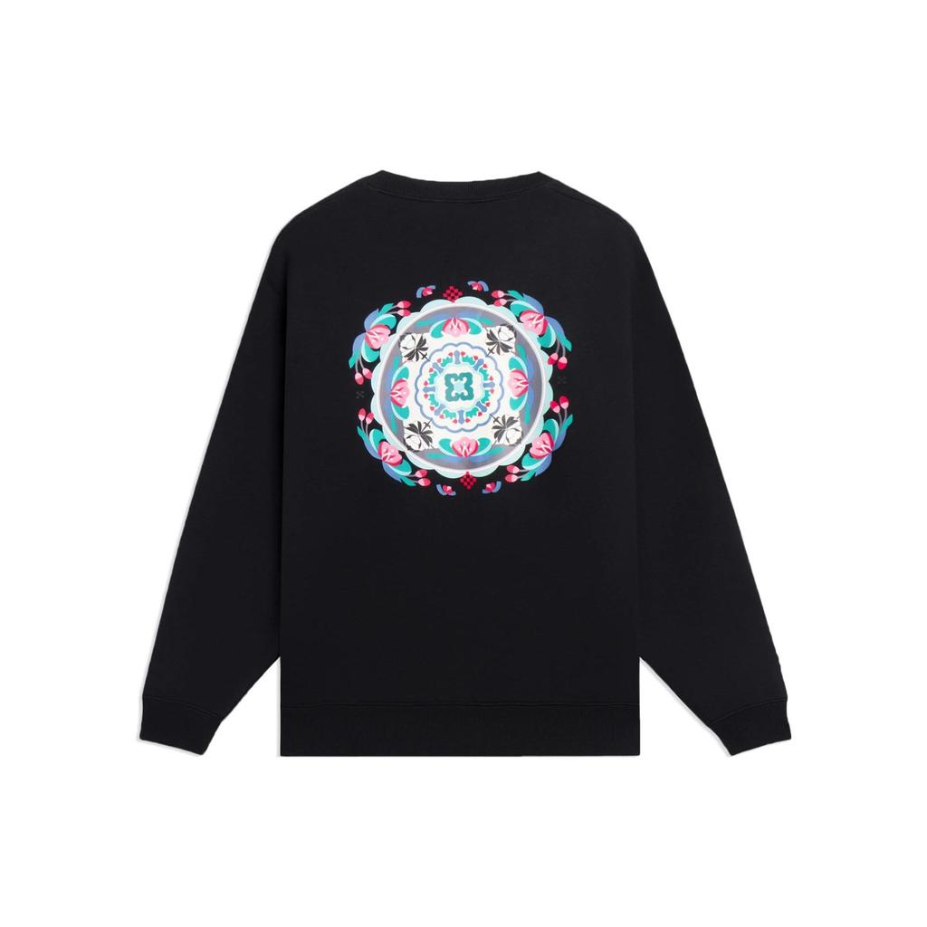 Li-Ning Спортивная серия Trend Back Print Logo Вышитый свитер Толстовка унисекс Топы Черный AWDSF47-1