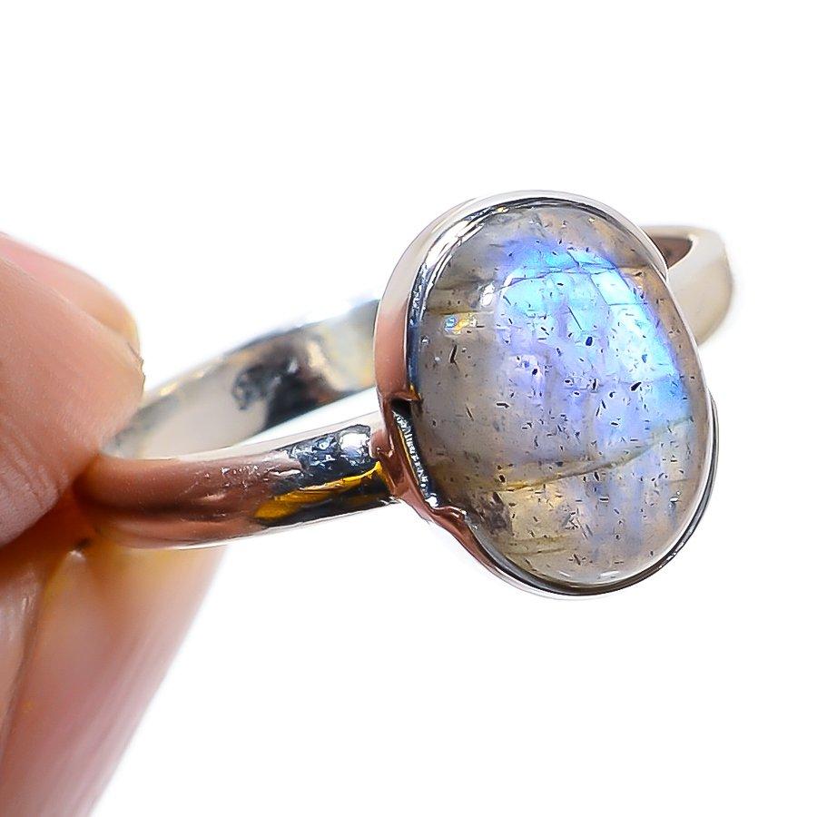 Кольцо из чистого серебра 925 пробы с натуральным лабрадоритом, размер 8, A6s97