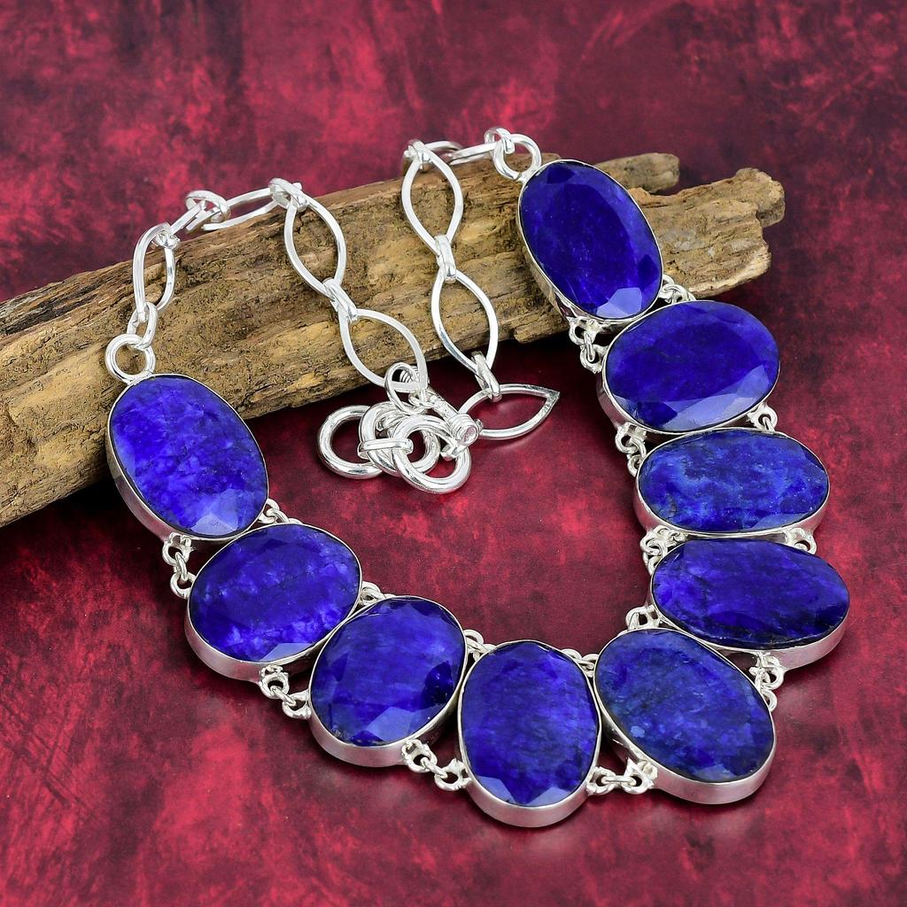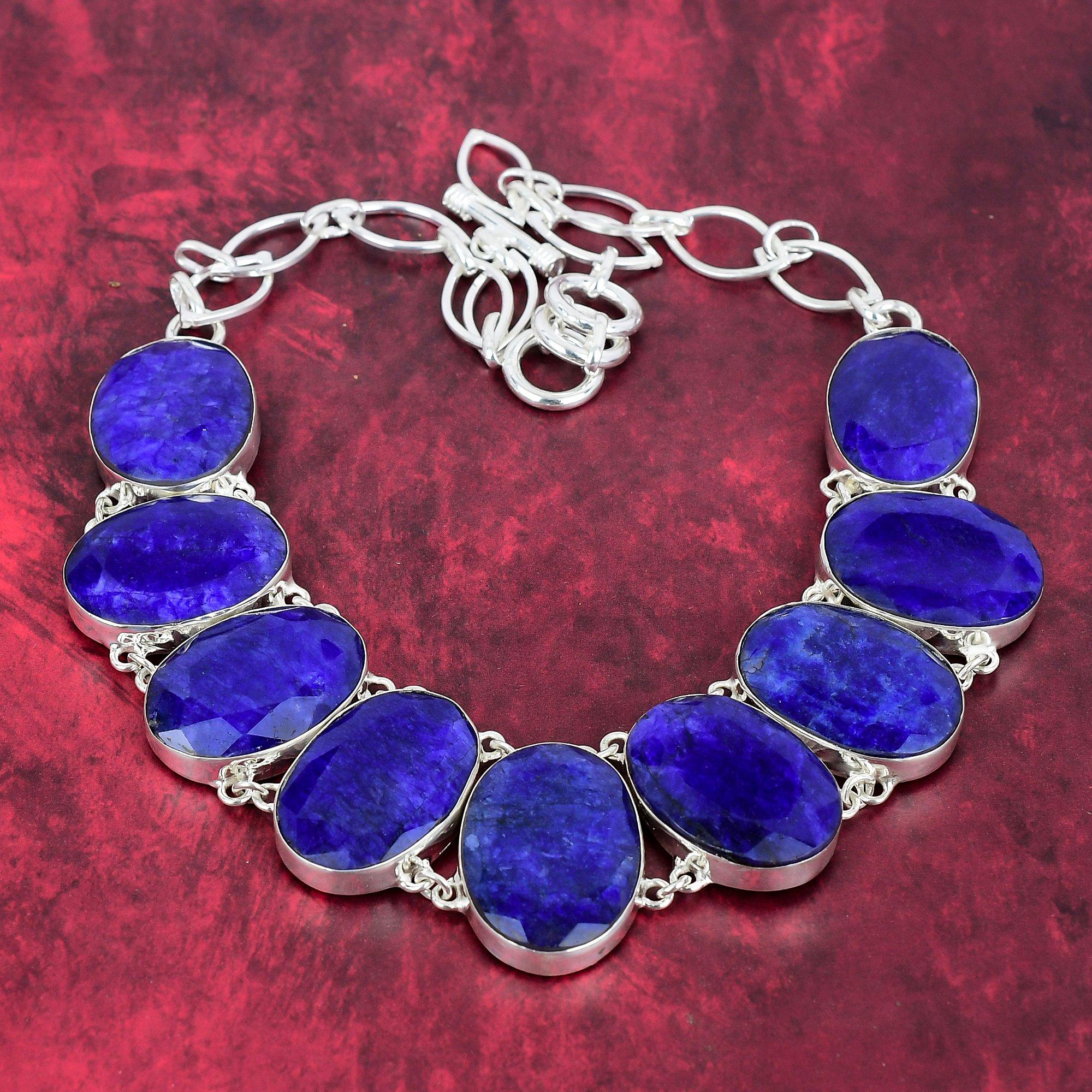 Ожерелье из стерлингового серебра 925 пробы с бирманским синим сапфиром, совершенно новые ювелирные изделия, регулируемая цепочка, ожерелье, драгоценный камень, ювелирные изделия ручной работы