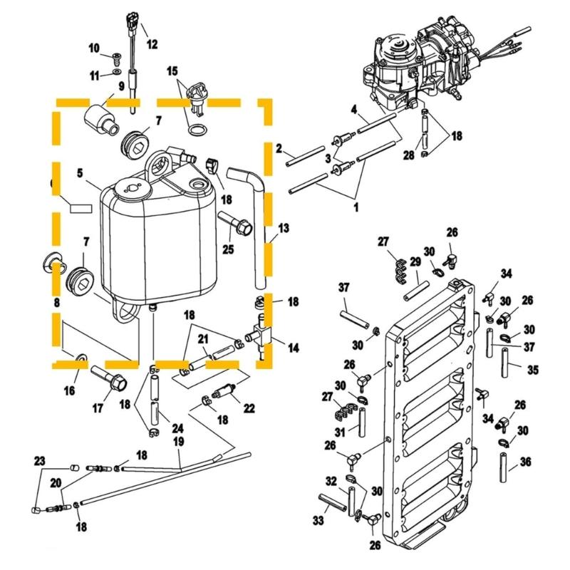 Подвесной масляный бак в сборе для DFI Sport XS 3.0L 200HP 225HP 250HP 8M0064075 1200-8M0064075 12008M006407