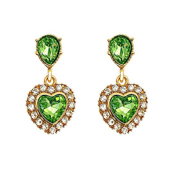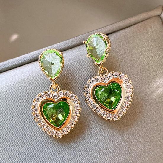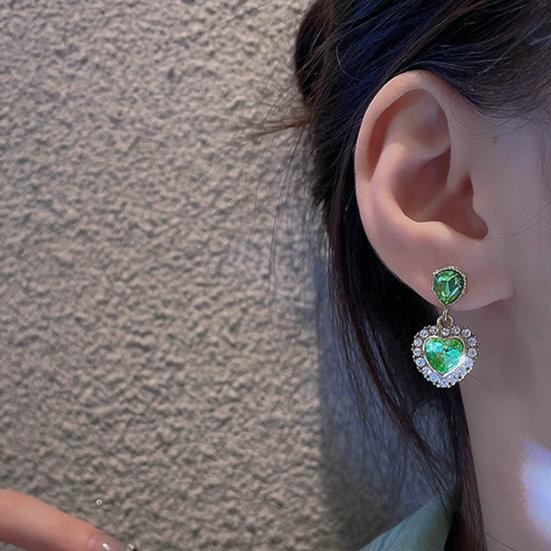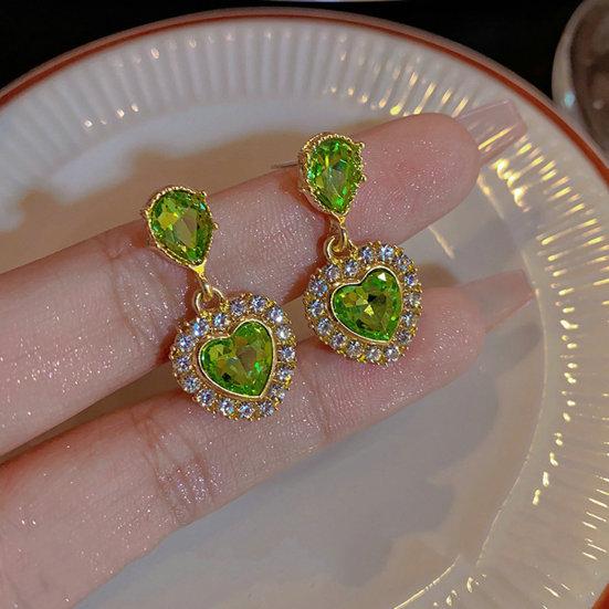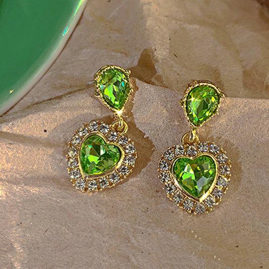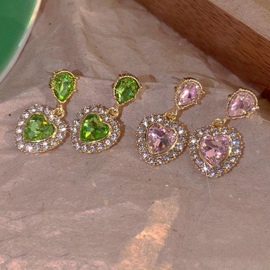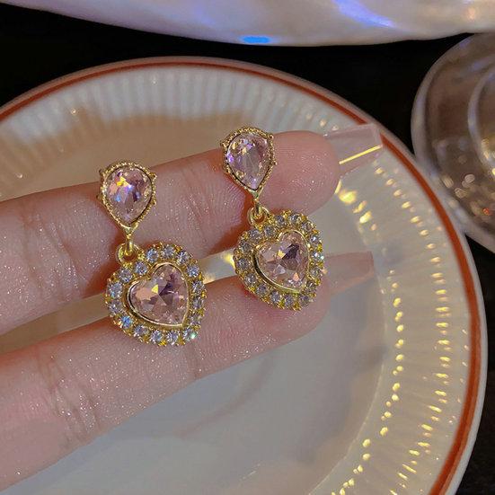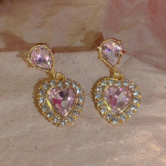 1 пара висячих серег со стразами и геометрическим гальваническим покрытием, легкие роскошные серьги-капли в форме сердца, ювелирный аксессуар