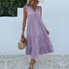 QICED Летняя плиссированная юбка без рукавов, свободное длинное платье с v-образным вырезом