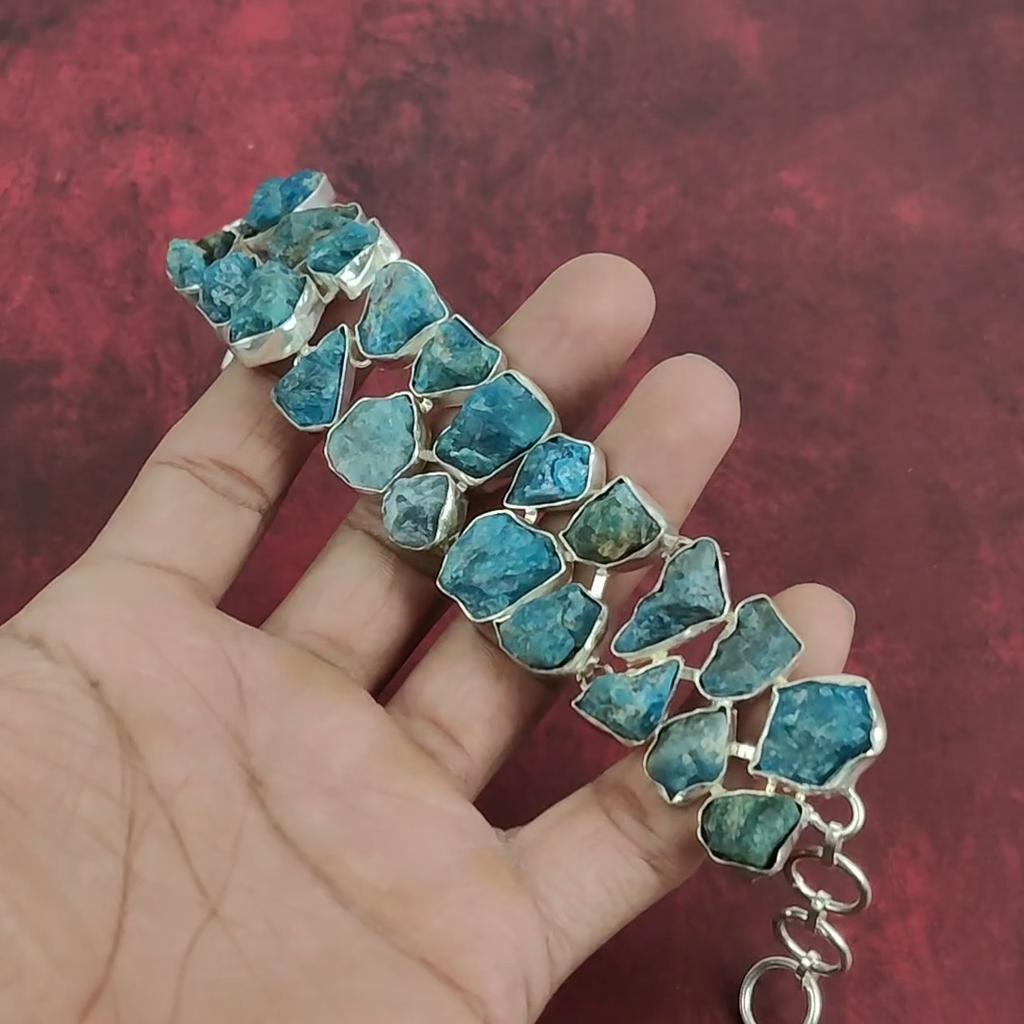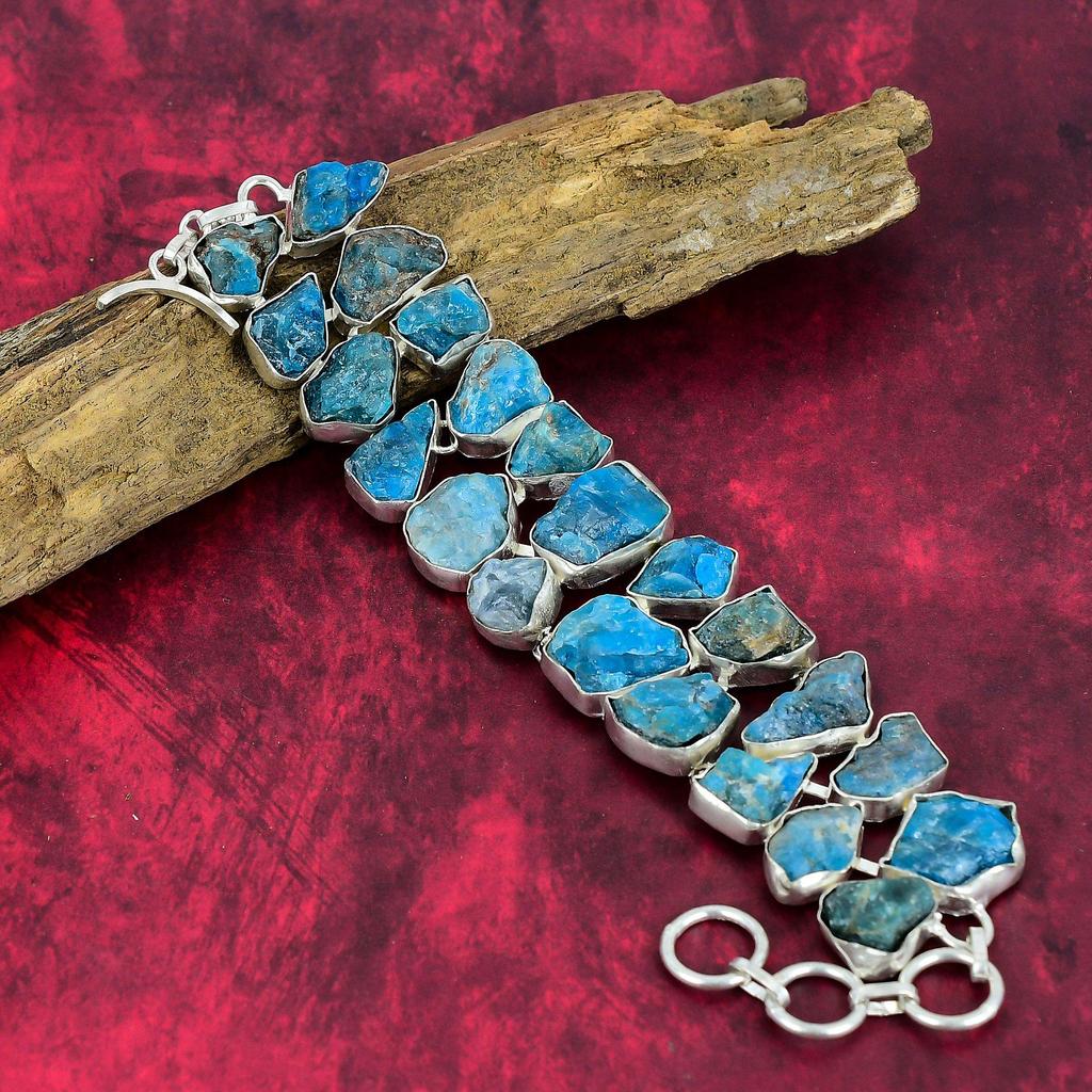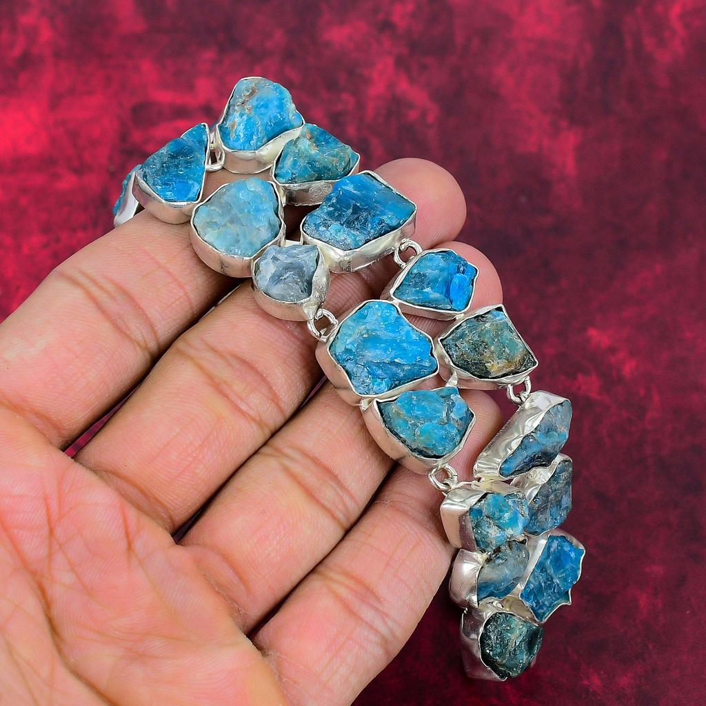 Ювелирные изделия из натурального грубого неонового апатита, ювелирные изделия из чистого серебра 925 пробы ручной работы, ювелирные изделия из апатита, потрясающий браслет-цепочка для нее