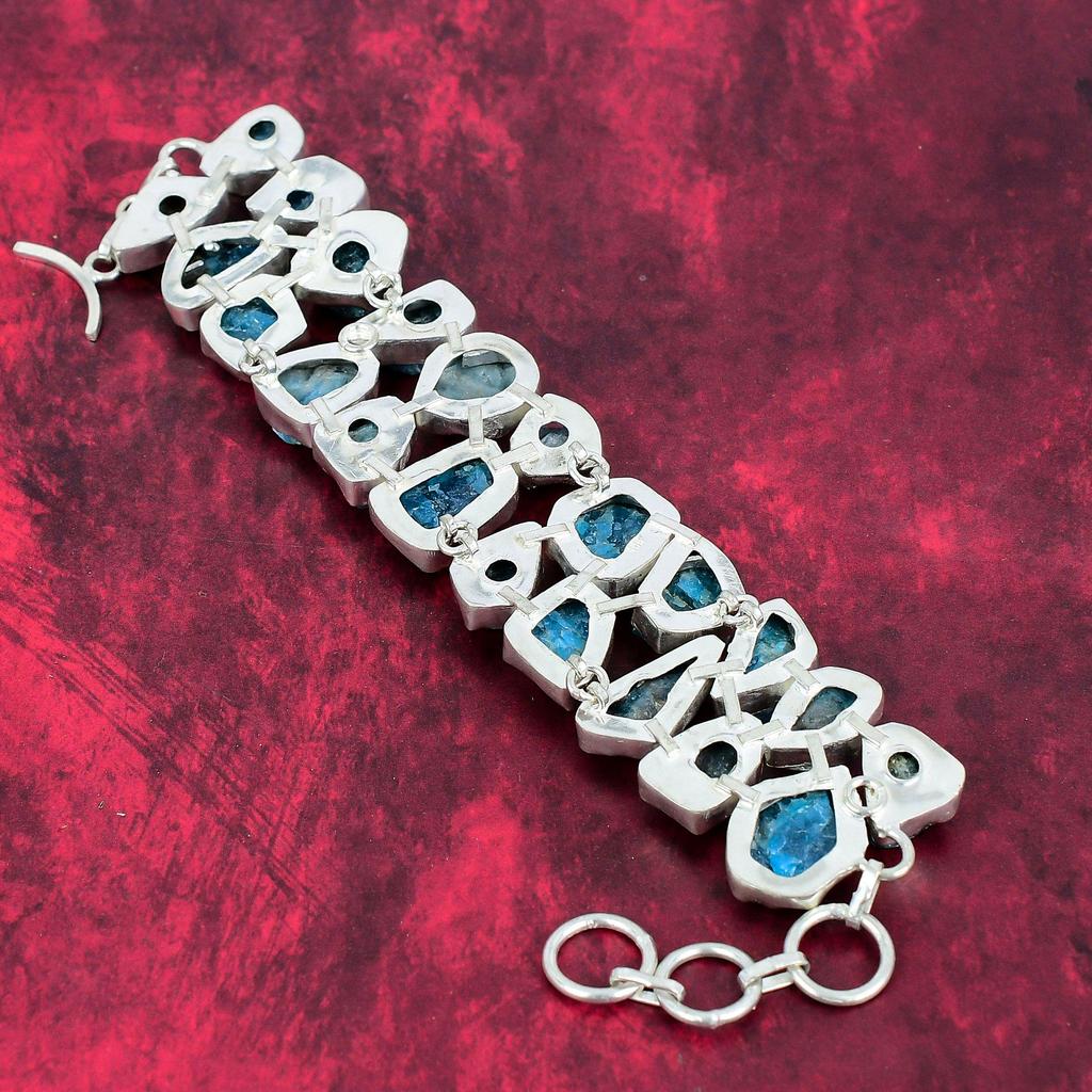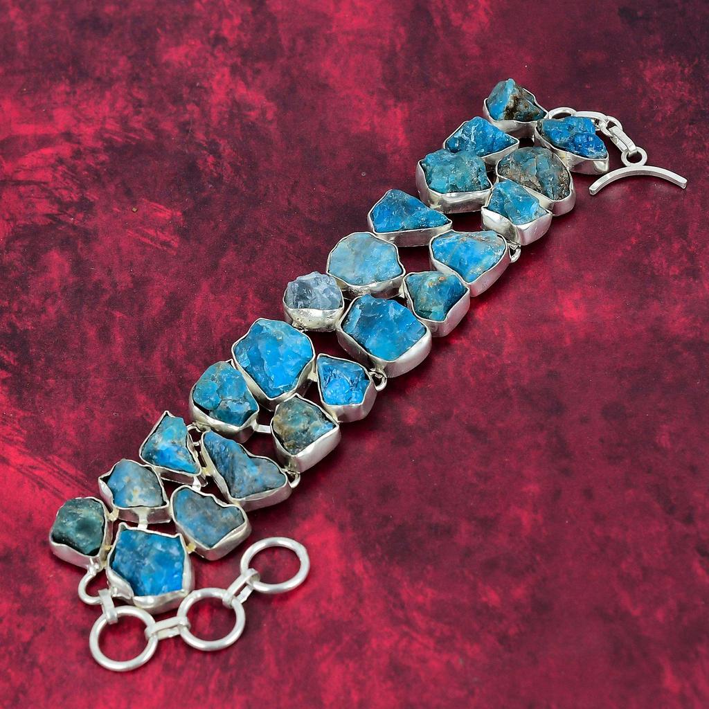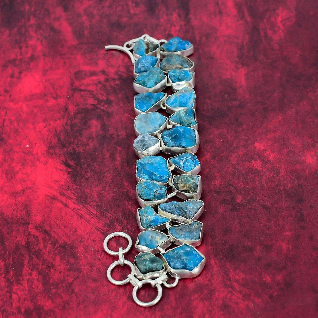 Ювелирные изделия из натурального грубого неонового апатита, ювелирные изделия из чистого серебра 925 пробы ручной работы, ювелирные изделия из апатита, потрясающий браслет-цепочка для нее
