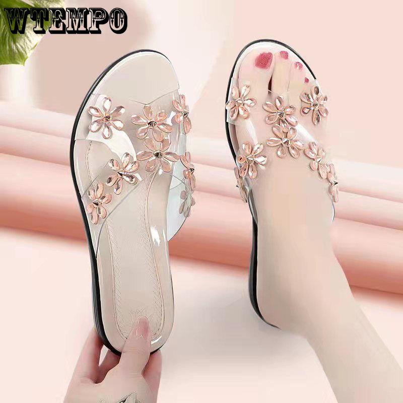 Женские сандалии, летние сандалии для мам, тапочки, нескользящая верхняя одежда, большие размеры, модные верхние тапочки со стразами и мягкой подошвой