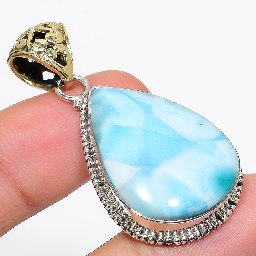 Natural Republic Ларимар Драгоценный камень 925 Проба Стерлинговое серебро Подарок Кулон 2 G9A32 — купить товар онлайн с бесплатной доставкой по всему миру!