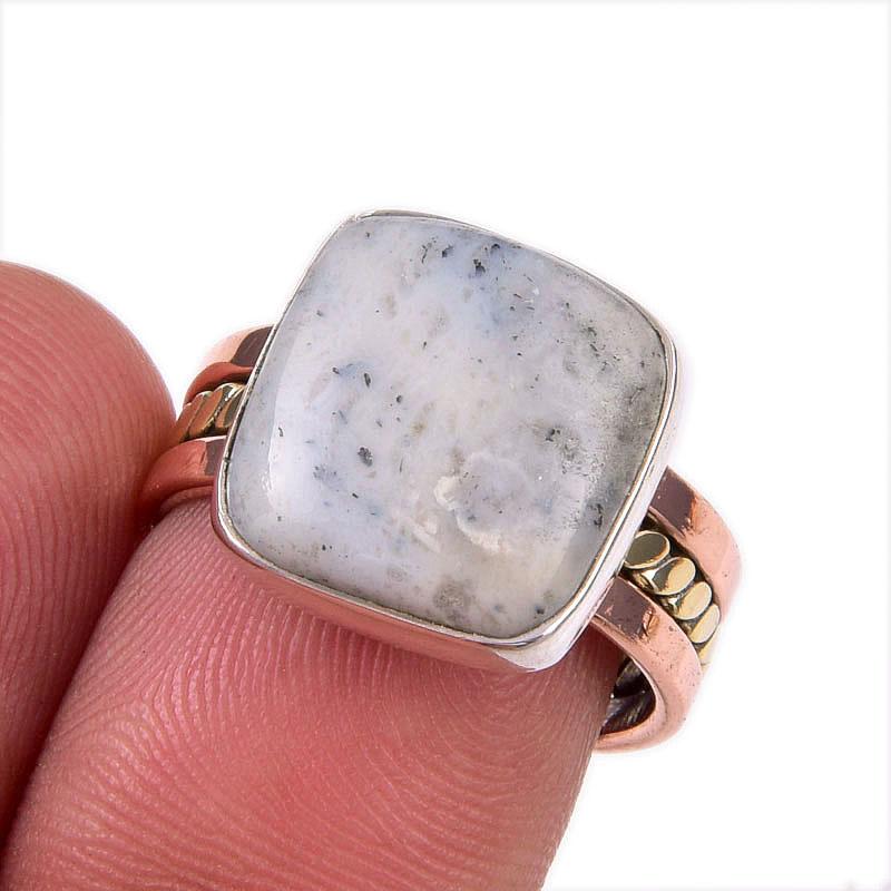 Кольцо из натурального опала с дендритом, двухцветное, из стерлингового серебра 925 пробы, размер 7 f1p18 — купить товар онлайн с бесплатной доставкой по всему миру!