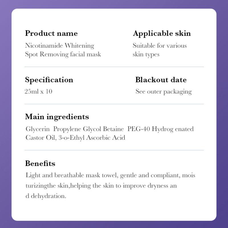 Ткань маски легкая и дышащая, мягкая текстура, увлажняющая и нежная, сохраняет влагу кожи, повышает влажность кожи, способствует питанию кожи, уменьшает сухость и делает кожу гладкой и увлажненной.