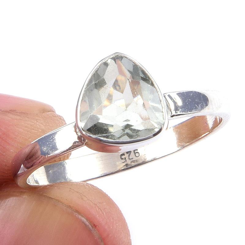 Кольцо из чистого серебра 925 пробы с натуральным зеленым аметистом, размер S.9 d5L70