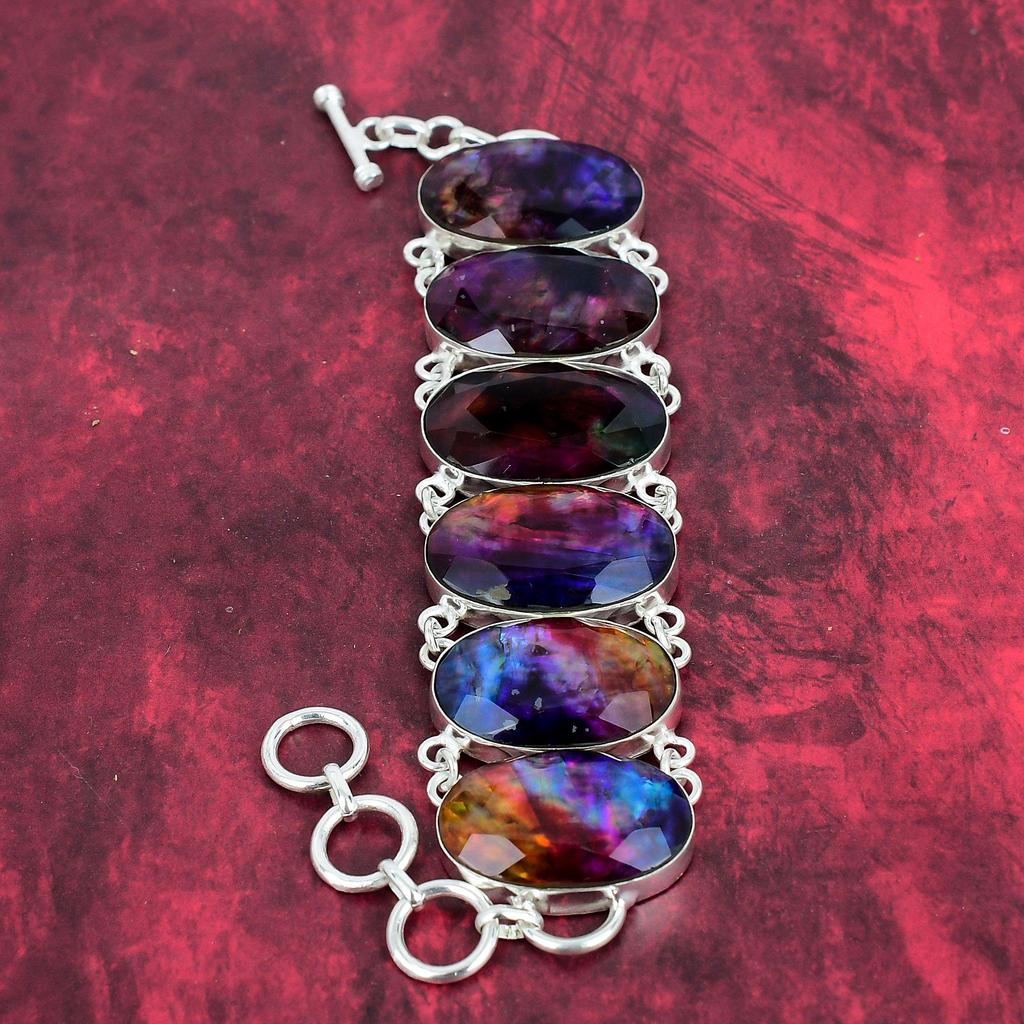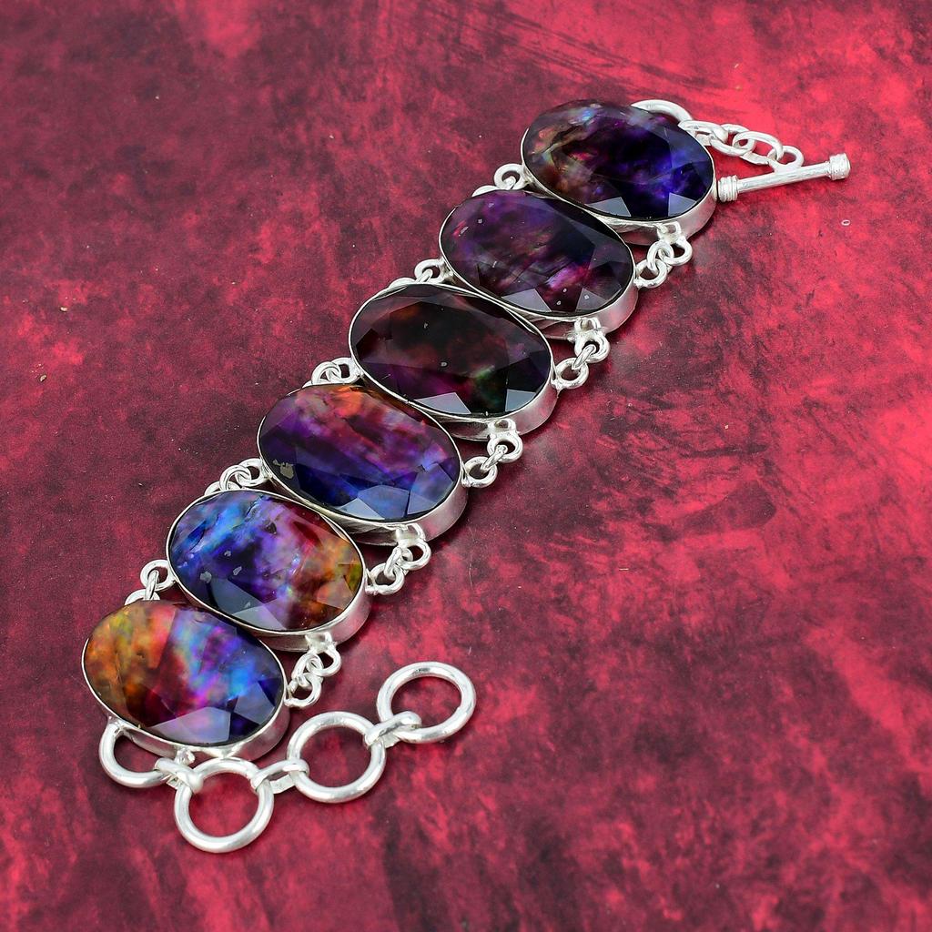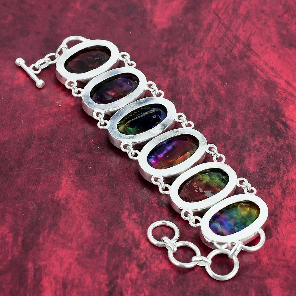 Браслет из чистого серебра 925 пробы с натуральным аммолитом и регулируемой цепочкой, ювелирный браслет ручной работы из драгоценных камней, для юбилейных украшений