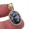 Natural Snowflake Obsidian 925 Sterling Silver Jewelry TwoTone Pendant 1.8" Y0P96