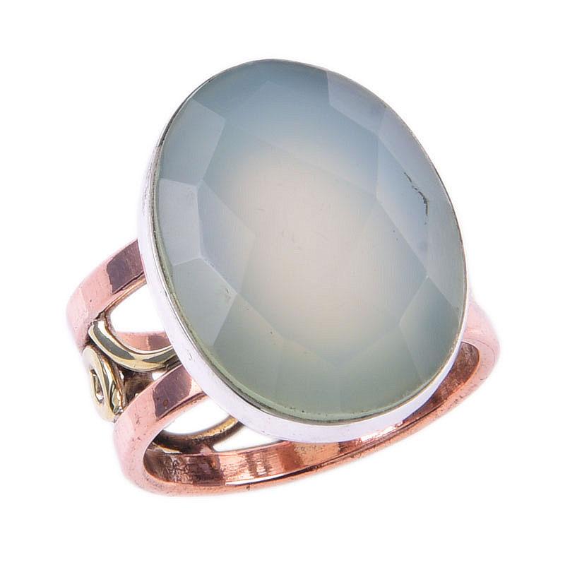 Кольцо из двухцветного серебра 925 пробы с натуральным аквамариновым халцедоном, размер 6 T9v08