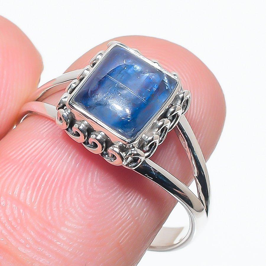 Натуральный голубой кианит драгоценный камень ручная работа 925 чистое серебро ювелирное кольцо размер 9 L3C52