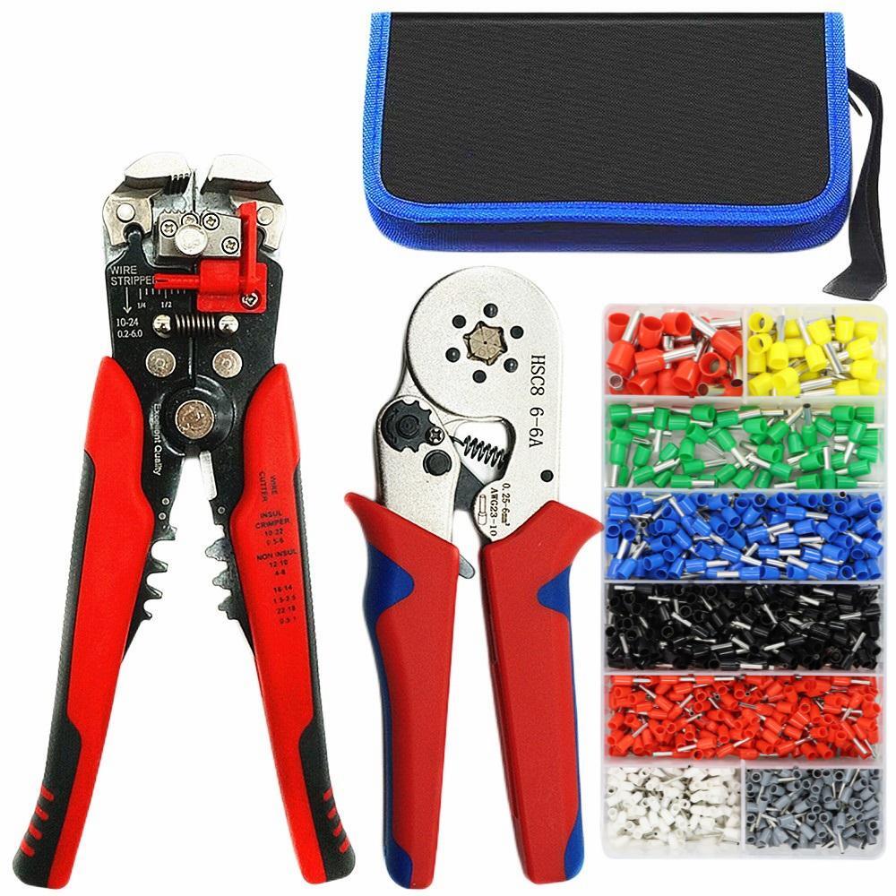 Комплект для обжима клемм с саморегулирующимися зажимами для проводов с храповым механизмом Диапазон обжима 0,25–6²MM и 0,08–16²MM Набор инструментов для обжима наконечников