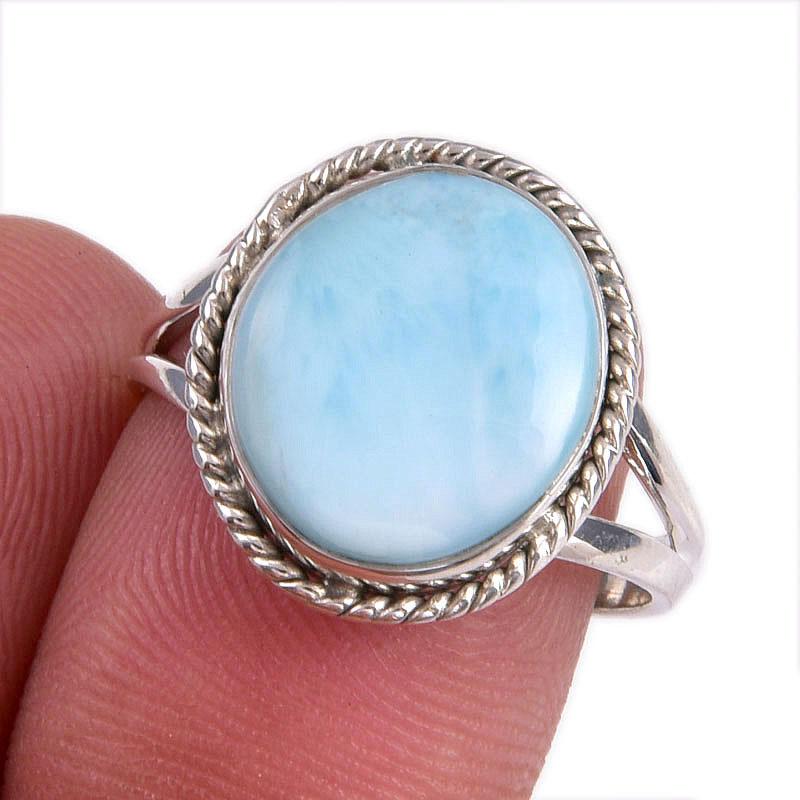Кольцо в подарок из стерлингового серебра 925 пробы с драгоценным камнем из натурального ларимара Natural Republic S.8 A9c55