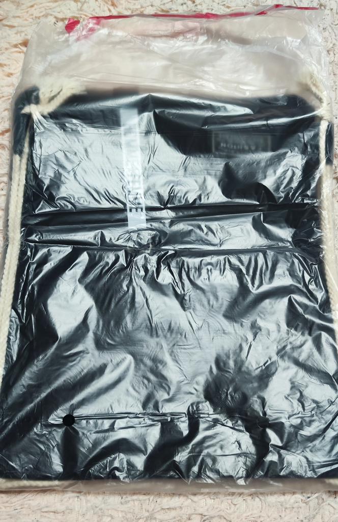 Мешок не большой .Тапки ещё можно положить а вот красовки или боты не войдут .Материал хороший плотный ,есть карман на молнии .Верёвки хорошие льняные.
