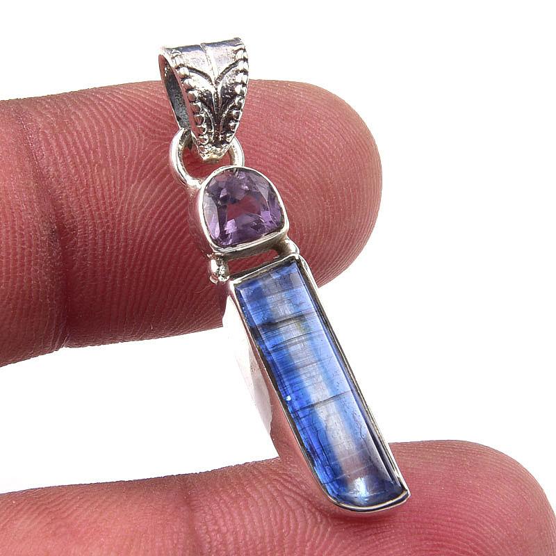 Подвеска из чистого серебра 925 пробы с натуральным кианитом и розовым аметистом 1,50 дюйма k3C37 — купить товар онлайн с бесплатной доставкой по всему миру!
