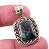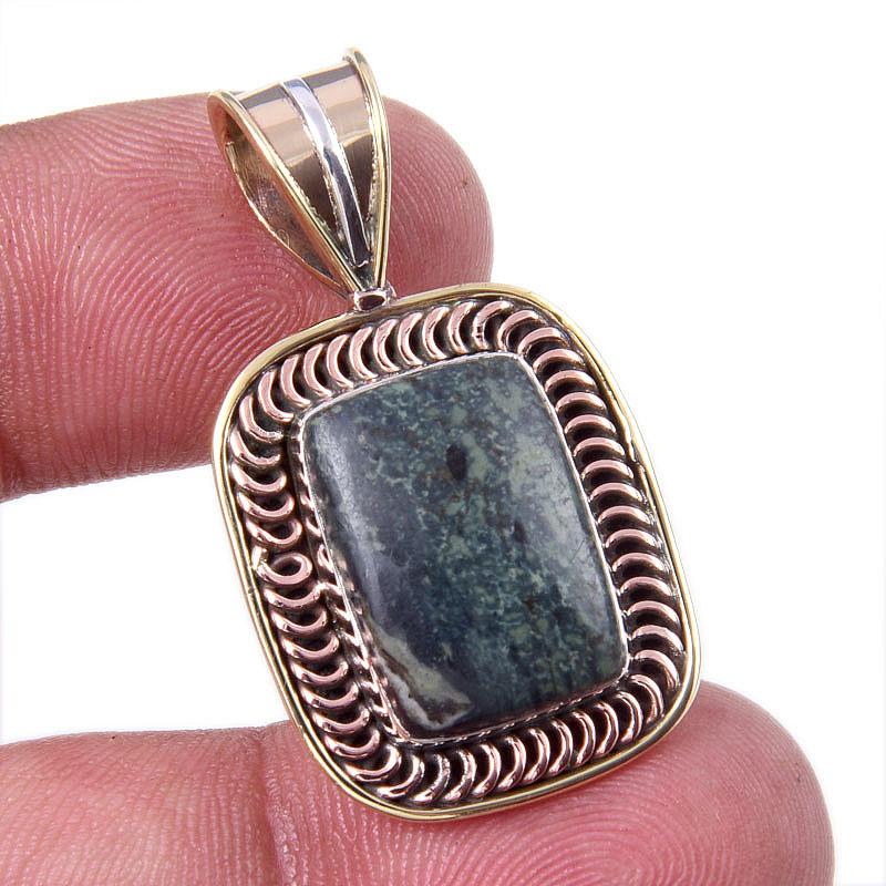 Натуральный зеленый питерсит драгоценный камень 925 проба цельное серебро двухцветный кулон 1,25" C3a06