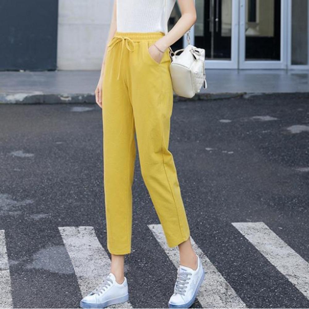 Женские однотонные брюки до щиколотки с эластичной резинкой на талии, весенне-летние женские брюки с карманами из чистого хлопка — купить товар онлайн с бесплатной доставкой по всему миру!