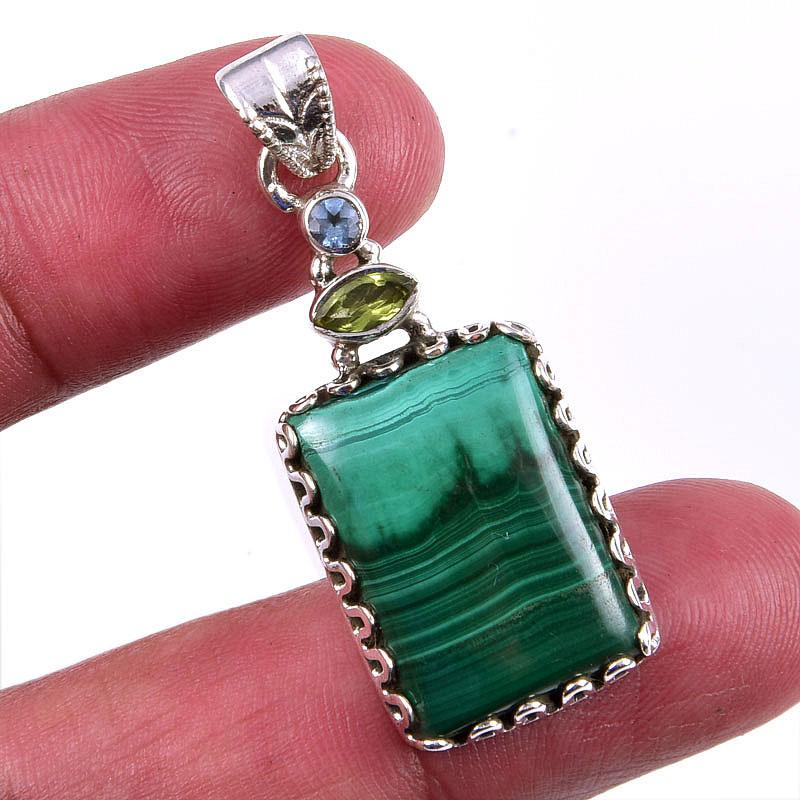 Подвеска из натурального малахита, перидота, стерлингового серебра 925 пробы, 1,50'', i8g80