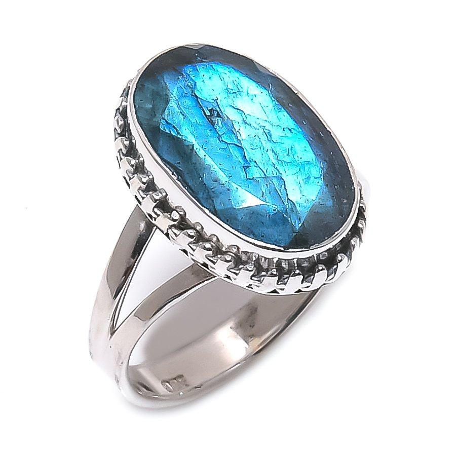 Ювелирное кольцо из чистого серебра 925 пробы с натуральным лабрадоритом, размер 7 Y9i22 — купить товар онлайн с бесплатной доставкой по всему миру!