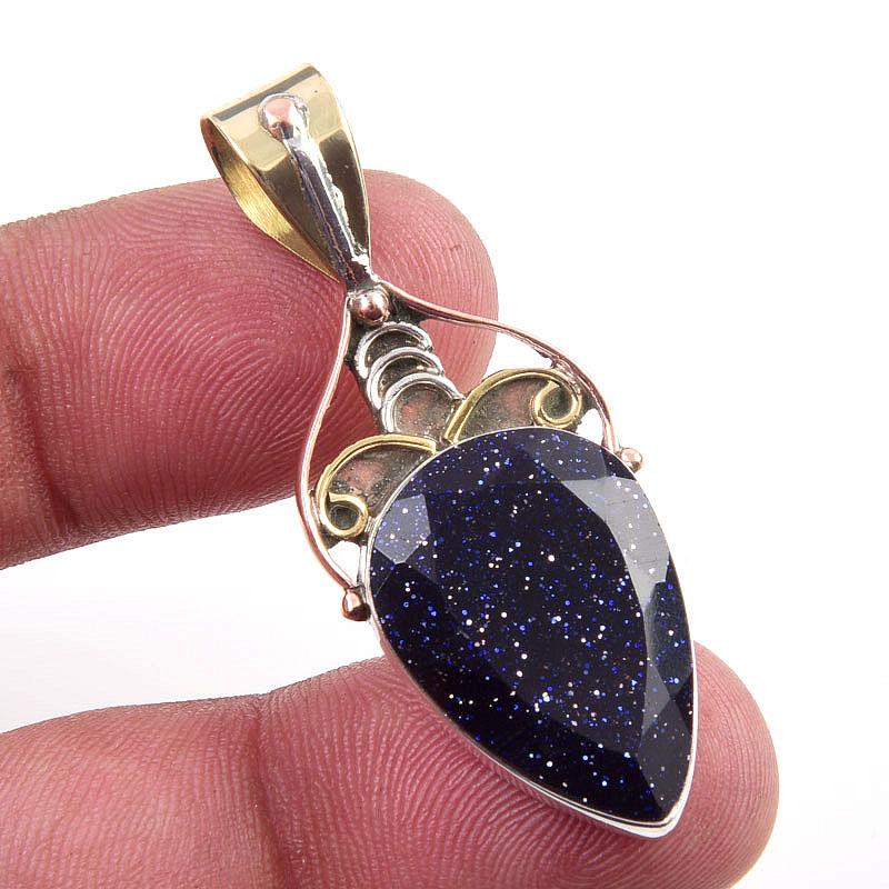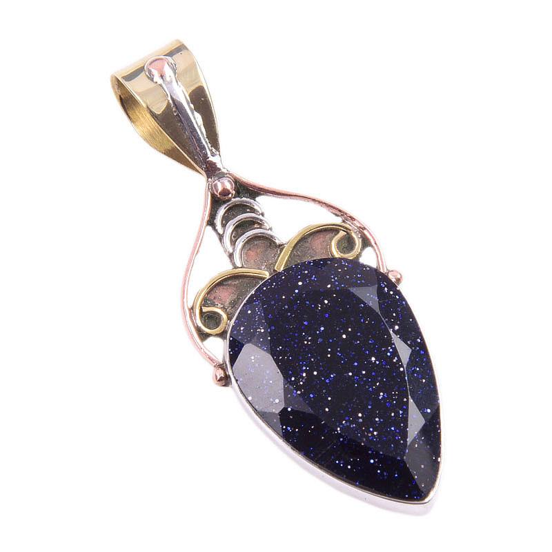 Натуральный голубой солнечный камень 925 проба стерлинговое серебро подарок двухцветная подвеска 1,75" b6n38