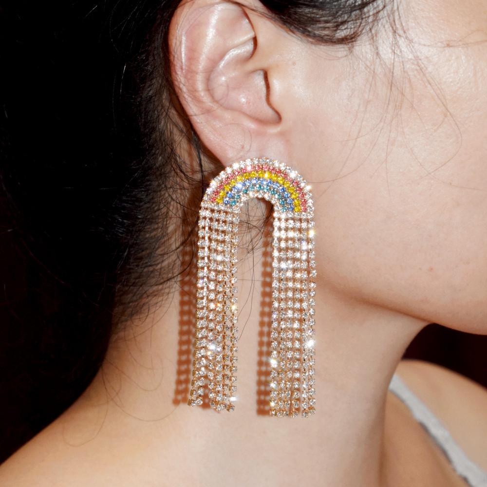 2022 Новая мода Радуга со стразами и кисточками Длинные серьги-цепочки с когтями женские темпераментные ювелирные изделия для подиума