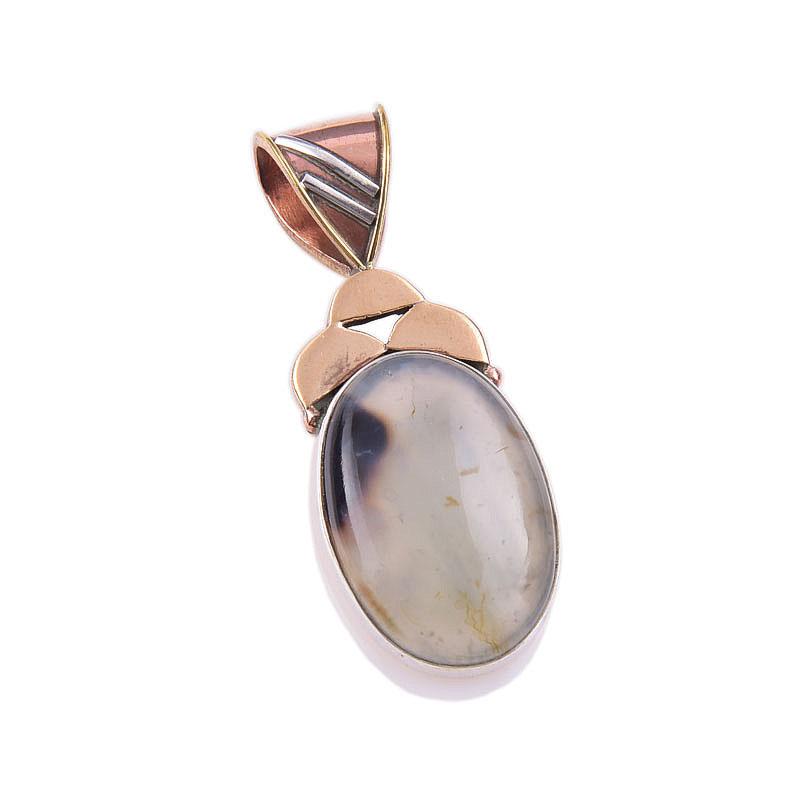 Подвеска из натурального ботсванского агата из стерлингового серебра 925 пробы в двухцветном исполнении 1,50 дюйма e7e50