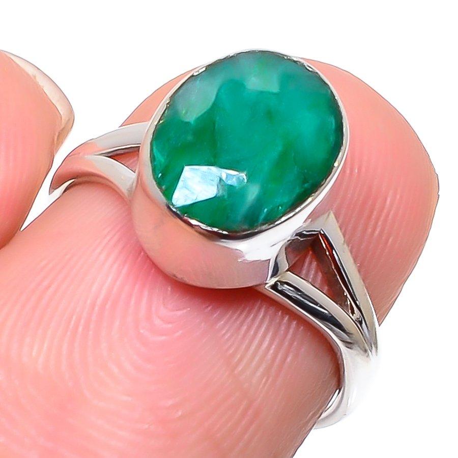 Изумруд(Смоделированный) Кольцо из серебра 925 пробы с драгоценными камнями ручной работы S.6 i4Y74