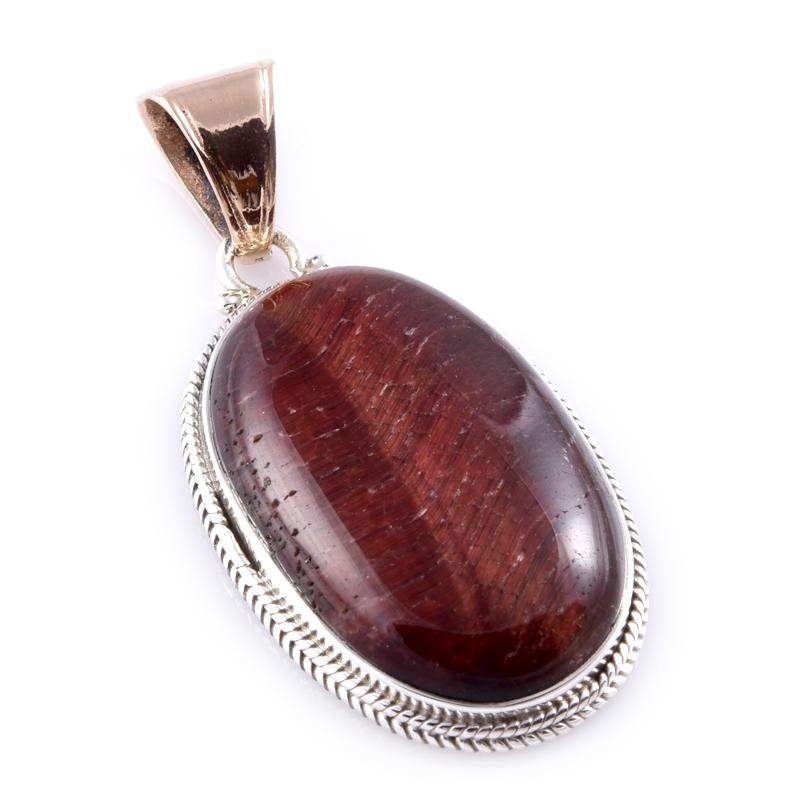 Подвеска из натурального красного тигрового глаза из стерлингового серебра 925 пробы в двух тонах 1,9'' e0H24