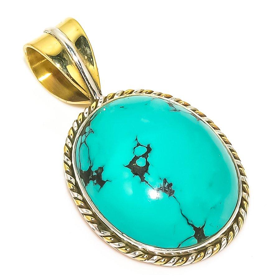 Натуральная тибетская бирюза двухцветная 925 пробы цельное стерлинговое серебро кулон 1,25'' n7O17