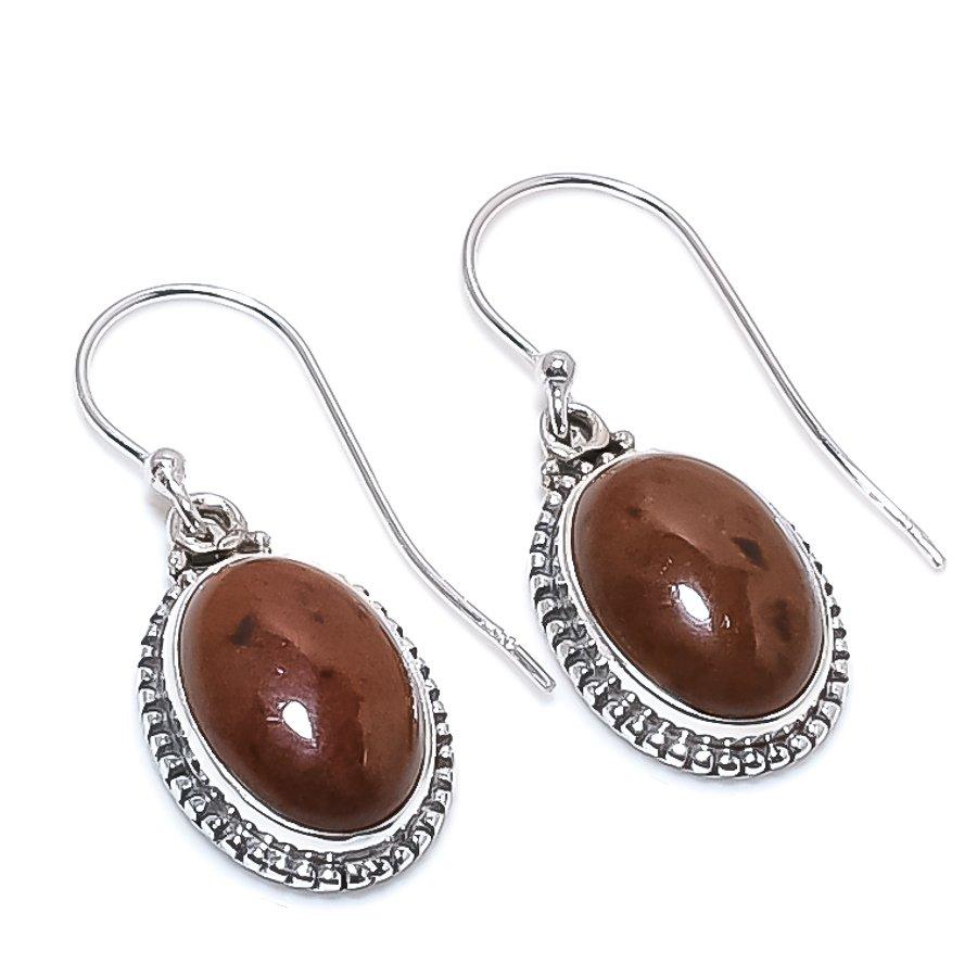Серьги из стерлингового серебра 925 пробы с натуральным обсидианом красного дерева, 1,25 дюйма, Q7m05